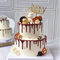 双层圆形鲜奶蛋糕,水果夹层,巧克力流边装饰,巧克力球、焦糖饼干,其他配件如图装饰。
