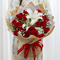 19朵红玫瑰,1枝多头百合,满天星丰满点缀,黄莺间插+奶油草莓圆形蛋糕