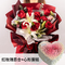 11枝卡罗拉红玫瑰、2枝多头白百合搭配粉桔梗、大叶尤加利叶+奶油裱花,水果夹层,食用珍珠点缀,外围巧克力碎(或椰蓉替代)