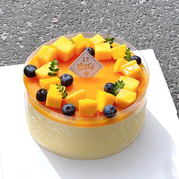芒果慕斯蛋糕,表层新鲜芒果、蓝莓如图装饰(至少提前半天预定)