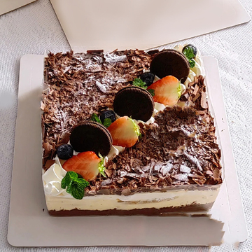 提拉米苏慕斯蛋糕,表层奥利奥饼干、巧克力碎、新鲜草莓等如图装饰(至少提前半天预定)