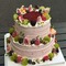 双层圆形水果蛋糕,表面水果如图装饰,表面铺果酱