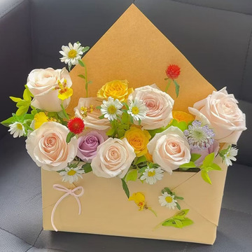 牛皮纸信封包装,如图装饰蝴蝶结和花瓣