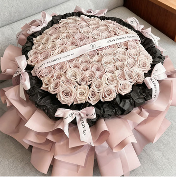 由于鲜花包扎各地的花艺师不同,可能在花束的形式和搭配上与图片不完全一致,但我们保证鲜花的主花材品种、新鲜程度、数量、颜色与说明一致,谢谢。