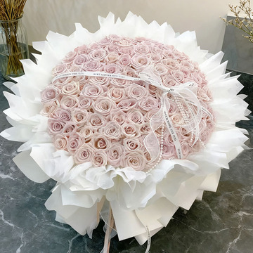 99支曼塔玫瑰,表面如图装饰蝴蝶结+珍珠链