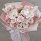 内衬粉色手揉纸,搭配粉色石纹纸+白色石纹纸,外围粉色手揉纸+透明玻璃纸,蝴蝶结束扎