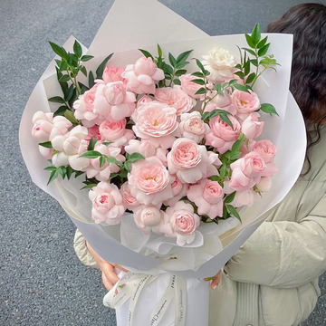 由于鲜花包扎各地的花艺师不同,可能在花束的形式和搭配上与图片不完全一致,但我们保证鲜花的主花材品种、新鲜程度、数量、颜色与说明一致,谢谢。