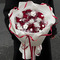 内衬白色雪梨纸,外围白色欧雅纸,红丝带围边,蝴蝶结束扎